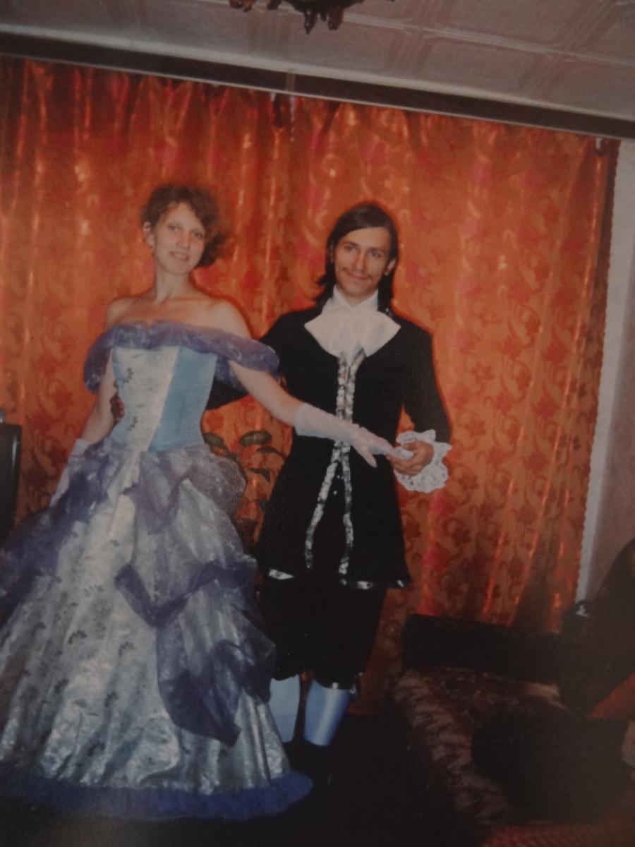 По просьбе Шинсу пересняла одно из любимых бальных платьев. Корсет, кринолин, все понты Корсет, правда, облегченный, но все равно дышать пришлось учиться по-другому, особенно после танцев, так что веер - необходимость, а не украшение